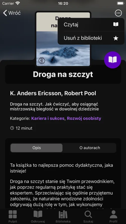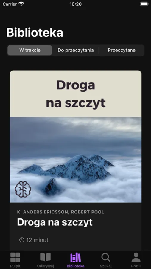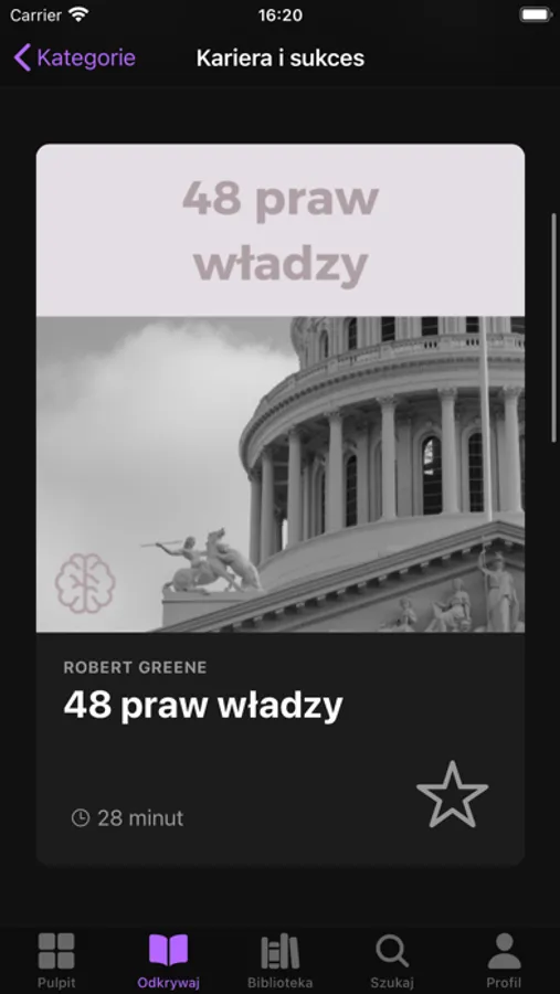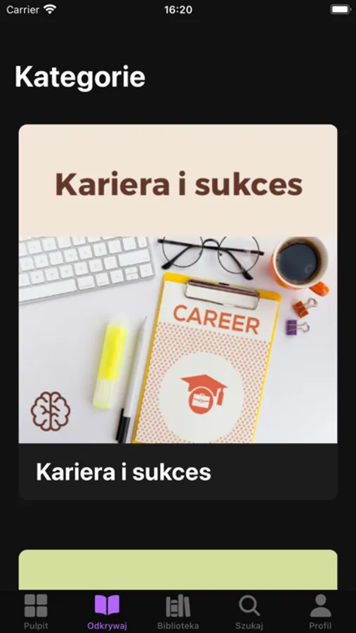 Wybierz interesującą Cię pozycję z kilku dostępnych kategorii tematycznych: kariera i sukces, ekonomia, finanse, marketing, sprzedaż, mindfulness, rozwój osobisty, filozofia, polityka, psychologia. Zostanie ona automatycznie dodana do Twojej biblioteki, do której możesz wrócić w każdej chwili.