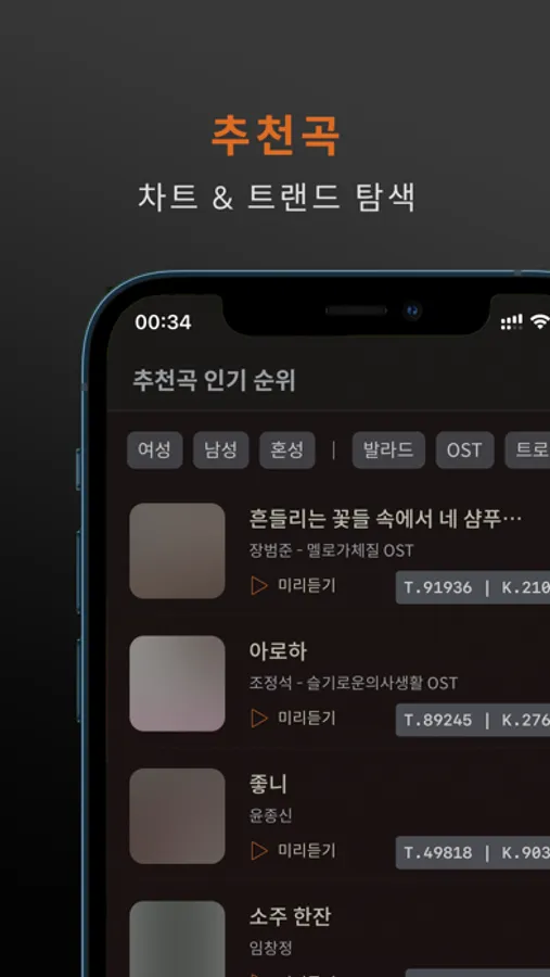 - 최신 인기곡부터 테마별, 가수별, 장르별 원하시는 음악을 만나보세요!