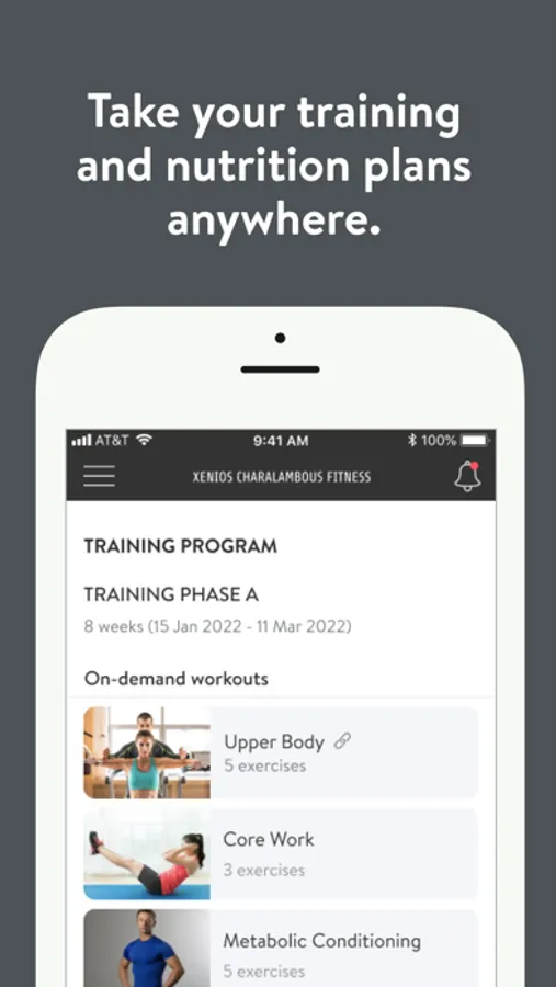 The Xenios Charalambous Fitness App is designed for Spartan Coaching Program clients. You can access workout programs designed specifically to help you reach your fitness and health goals! You can follow & track your workouts, nutrition, lifestyle habits, measurements and results–all with the help of your coach.