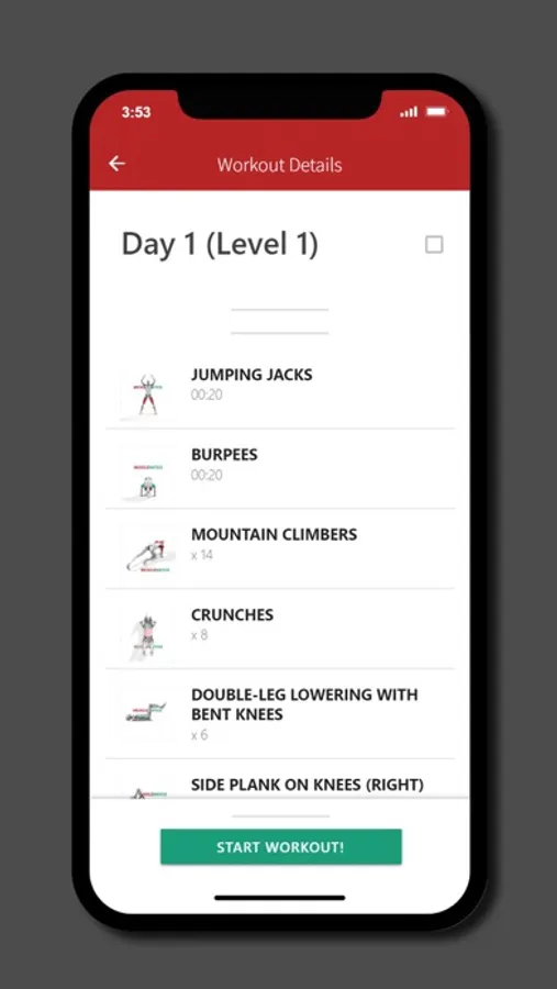 Follow along through each guided workout day consistently for 30 days and you may see great progress in your health and those six pack abs!