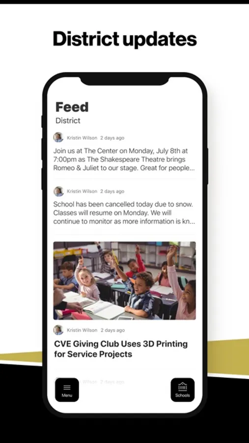 In the Live Feed is where you'll find updates from the administration about what's going on in the district right now. Whether that's celebrating a student's success, or reminding you about an upcoming deadline.