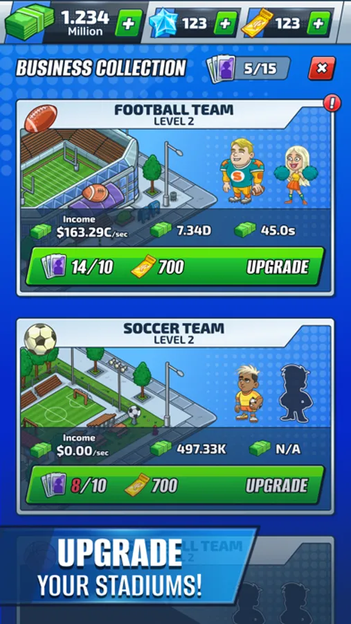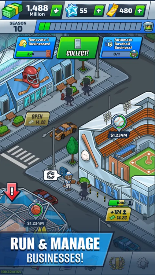 In Sports Playoff Idle Tycoon, you play the brains behind a small town with big ambitions, building up a series of sports stadiums, and protecting them from villainous commissioners, corrupt referees, and tabloid paparazzi to shut you down. Immerse yourself in the world of Sports Playoff Idle Tycoon, with simple yet engaging gameplay and fun and playful narrative.