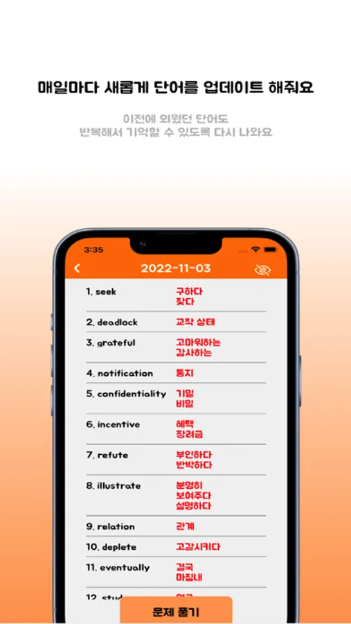 - 매일 업데이트되는 새로운 단어를 외울 수 있습니다.
