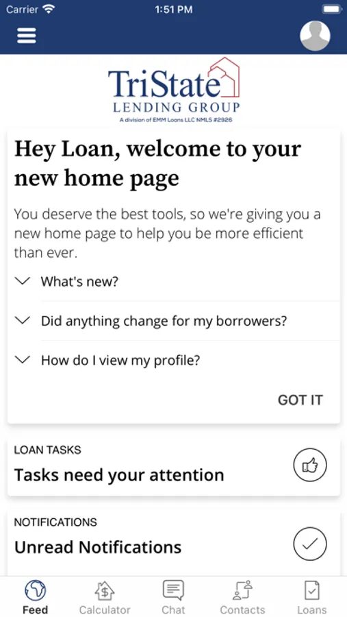 · Easily access contact information for your TriState Lending Group Loan Officer AND Real Estate Agent and share this information with family and friends.