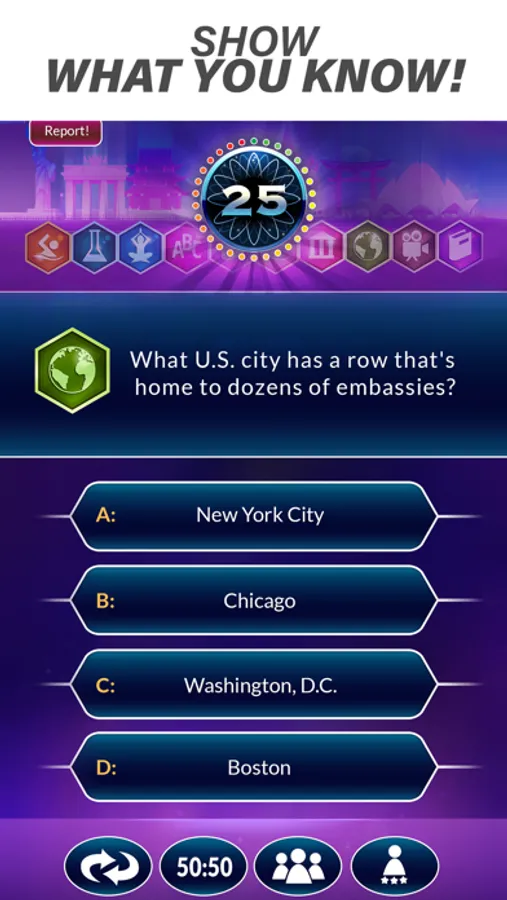 Challenge hundreds of thousands of others around the world as you climb to the top of the leaderboards! Show off your knowledge with the most fun quiz show in the world!