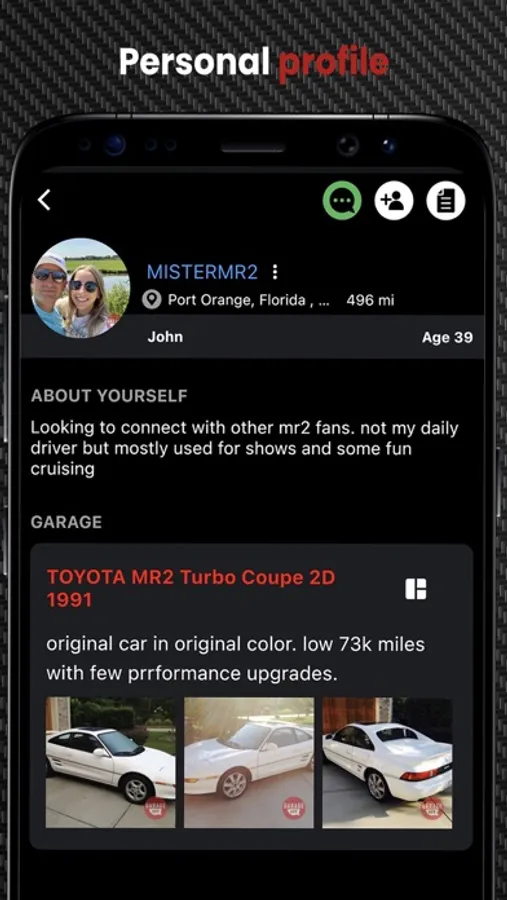 - A garage page where you can view and showcase vehicles from other community members based on location.