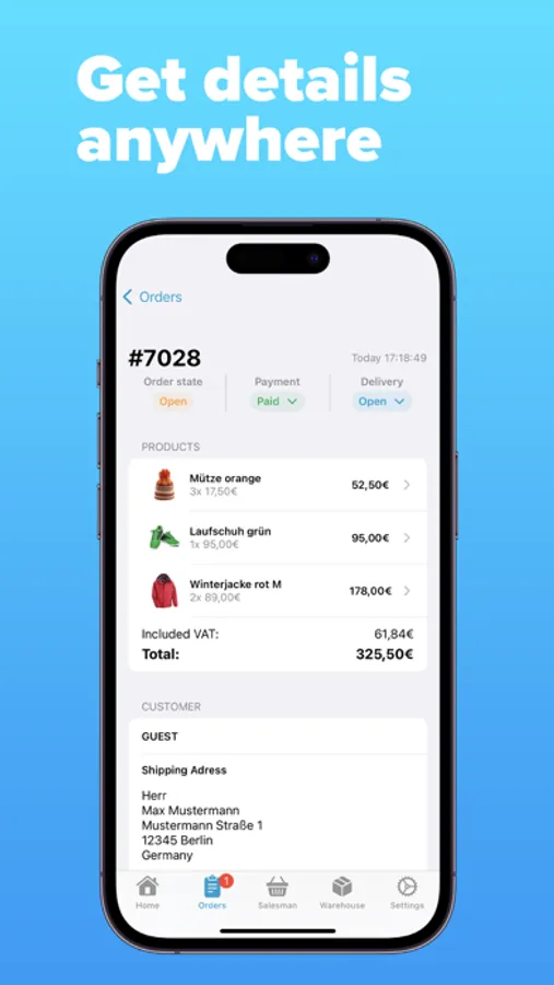 For multishop operators, the app offers the possibility to connect to different backends.