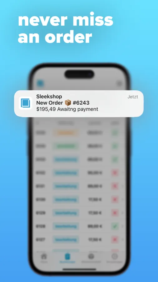The store owner is informed about incoming orders and other changes via various push messages.