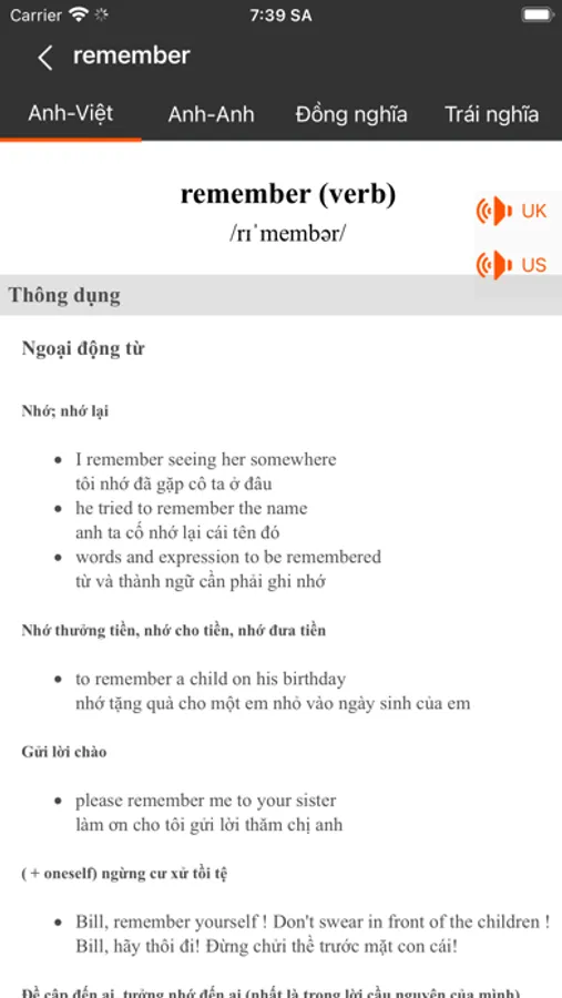+ Chi tiết từ vựng: nghĩa của từ, phát âm giúp bạn học phát âm tốt hơn