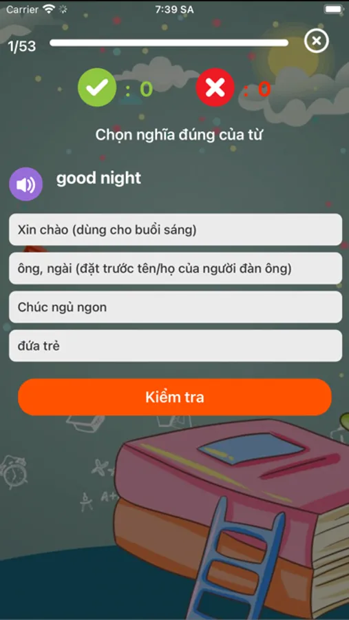 + Trắc nghiệm: thông qua những từ bạn đã đánh dấu trong phần đã học, đang học hay tất cả toàn bộ