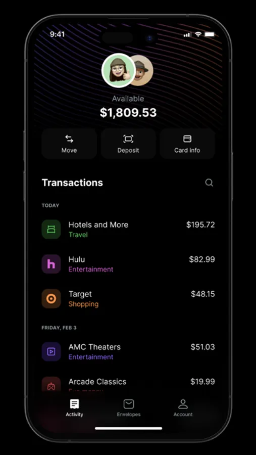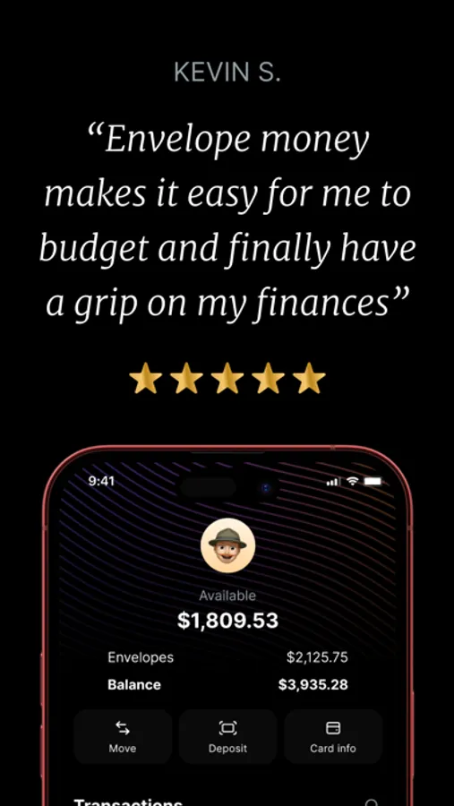 * Banking services provided by Evolve Bank and Trust, Member FDIC. The Envelope Money card is issued by Envelope Money's partner banks, Members FDIC, pursuant to license by Visa. Banking services provided by Evolve Bank & Trust; Member FDIC. Envelope Money is a financial technology company, not a bank.