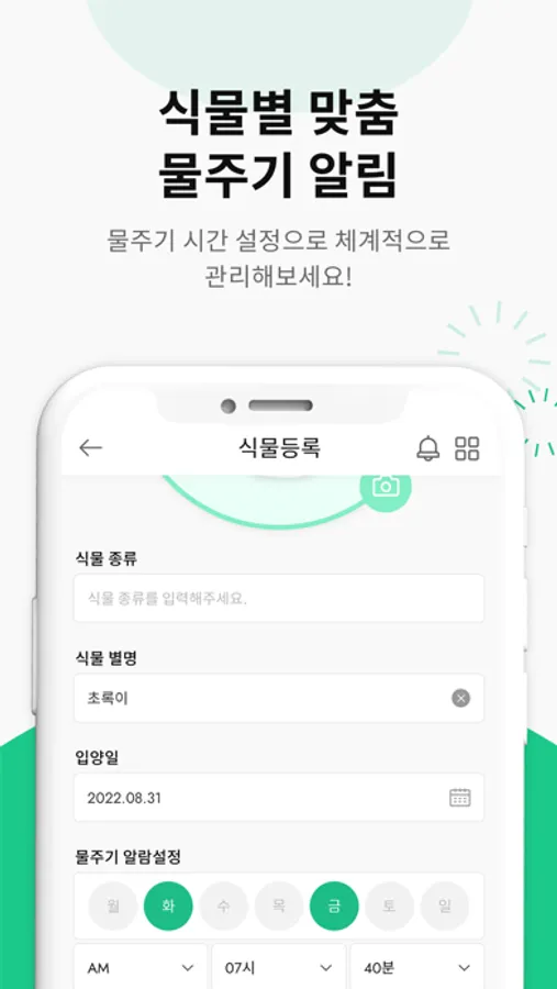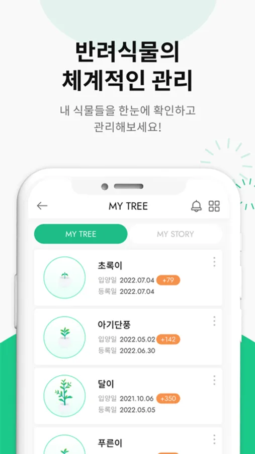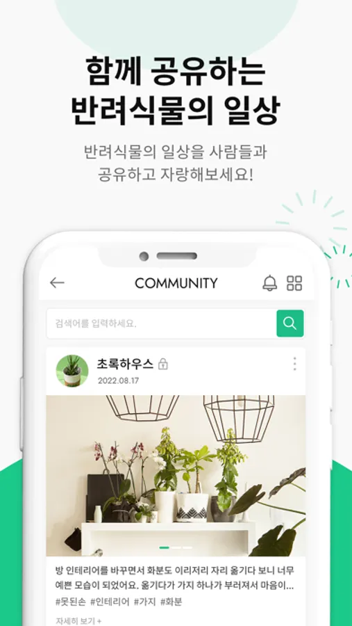 식물 별 맞춤 물주기 알림을 보내드리고, 반려식물의 일상들을 공유할 수 있습니다.