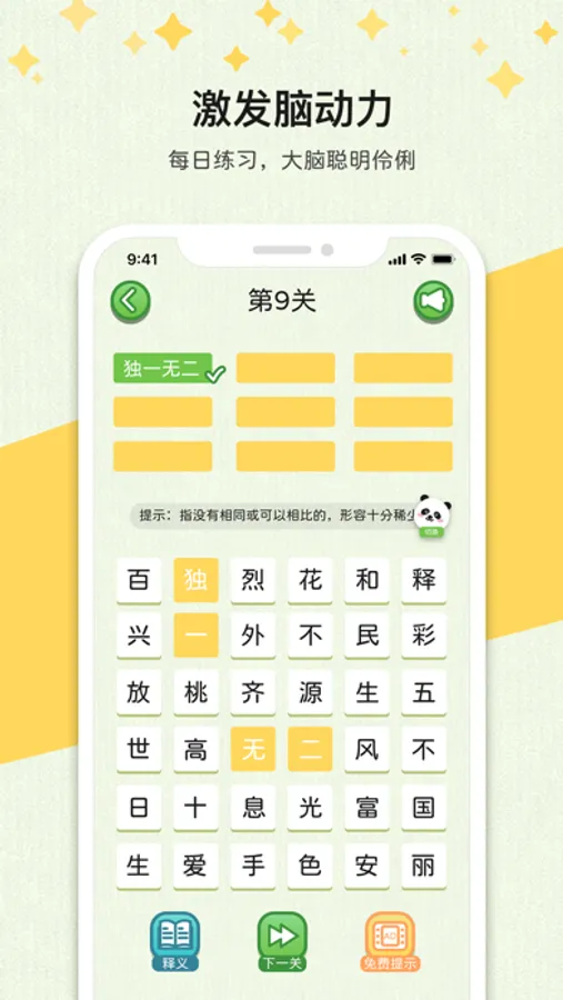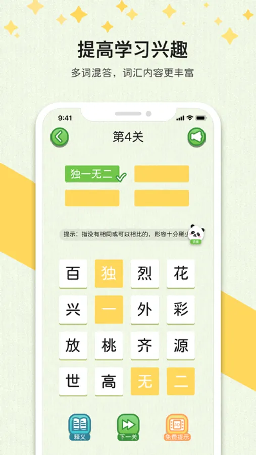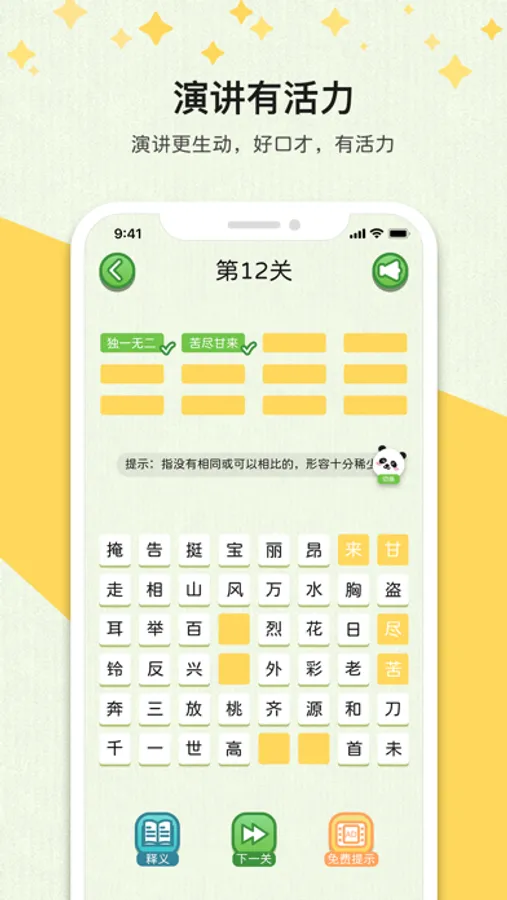 3.由浅入深,通过成语接龙大闯关疯狂猜词由易到难的学习模式,让你轻松体验成语闯关的乐趣成为成语小天才。