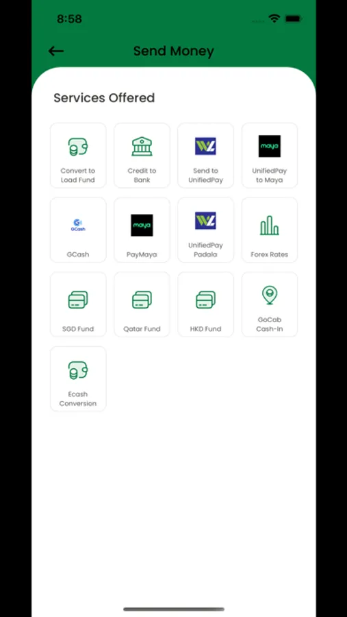 -Wealthy Lifestyle Remittance offers services like Ecash Padala, Ecash to GPRS outlet, Ecash to Ecash, Ecash to Load fund, Ecash to SGD Load fund, Smartmoney, Ecash to MyVisacard, Ecash to VisaCard, Ecash to credit to bank and remittance payouts like Iremit, Transfast and New York Bay.