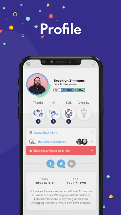 Meet your neighbors. Share information about you and your interests, thank them, post an SOS, or ask to drop by.
