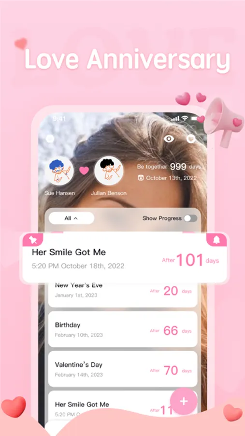 Love Notes is a software that helps you record your love time, heartwarming daily, remembrance day and countdown day. We will provide you with two modes of recording.