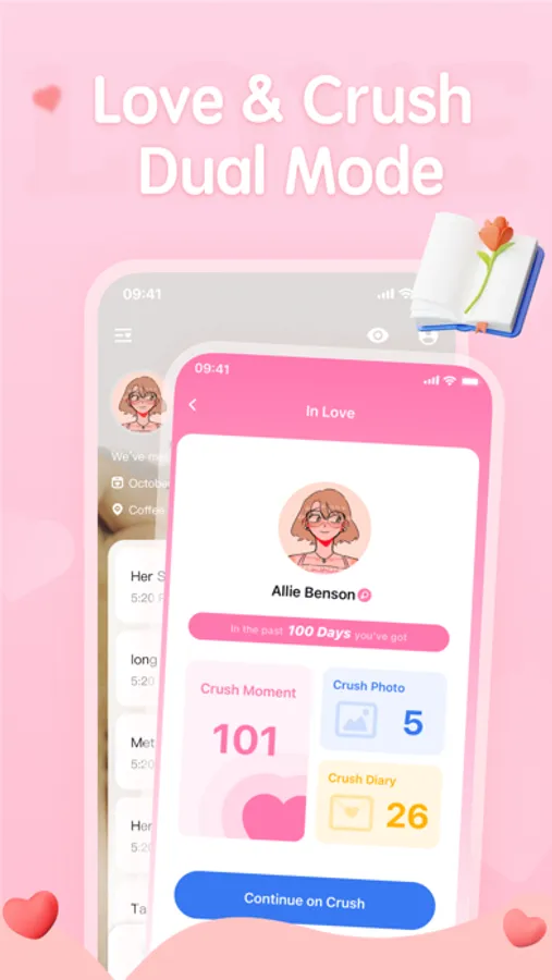 - Create an exclusive Crush record for him/her: the time and place of meeting, the moments that make your heart flutter
