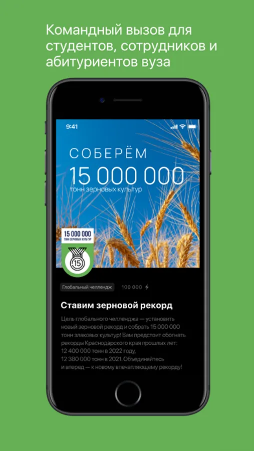 1. Глобальный челлендж — участники объединяются в приложении для решения общего вызова. Приложение в реальном времени фиксирует вклад каждого и отображает как коллектив движется к цели.