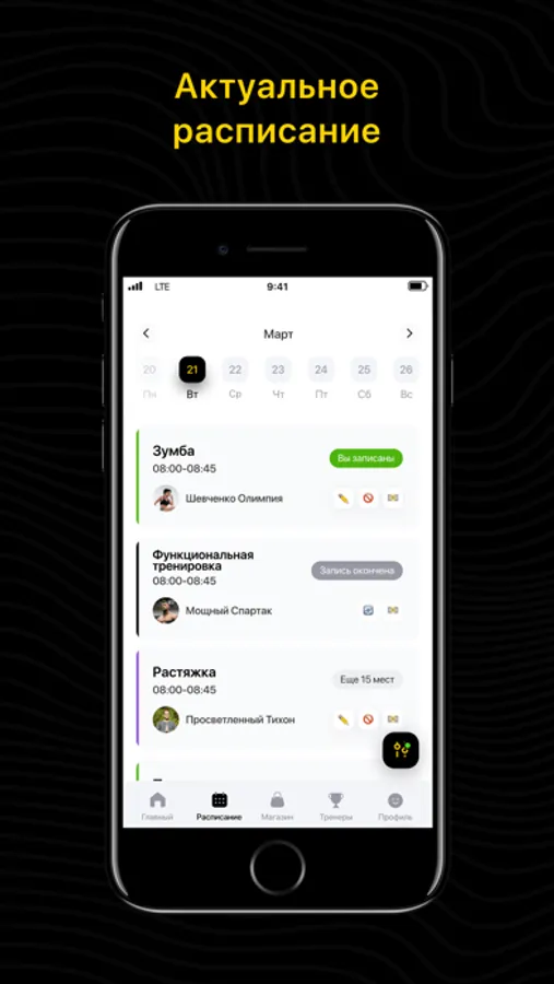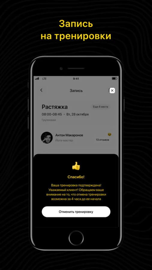 Получать PUSH-уведомления о предстоящей тренировке за 3 часа;