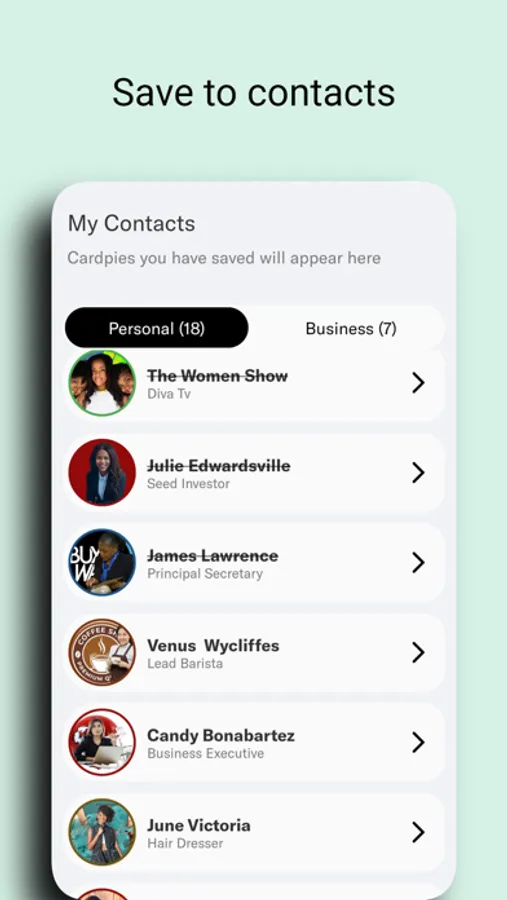 - Extra cloud storage of up to 500 CARDPIEs to your contacts. Build a bigger network by adding more people to your CARDPIE contacts.
