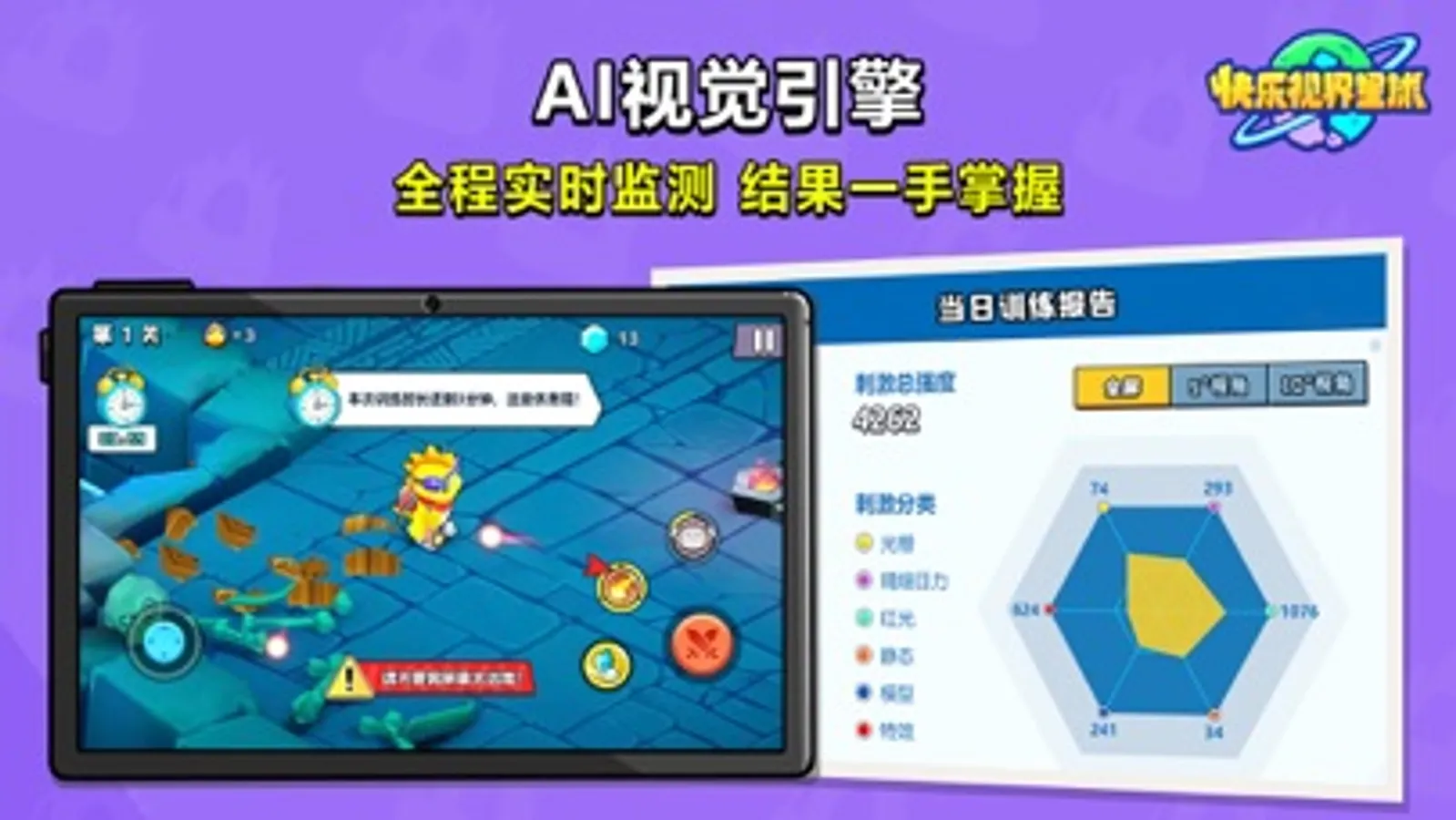 《快乐视界星球·视觉训练系统》是一款Roguelike弹幕射击类型的游戏化AI医疗软件,主要供12周岁前的斜弱视及双眼视功能异常的儿童康复训练使用。产品由互联网游戏团队和专业眼科医学团队共同研发,将国际认证的弱视治疗方法采用游戏化的形式展现出来,实现了互联网游戏技术和专业医疗技术的跨界融合。目前该产品已获得二类医疗器械注册证。