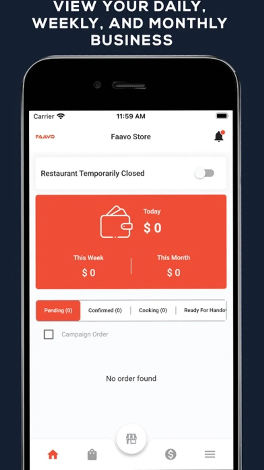 The Faavo vendor completments your existing order protocol. If you'd like to receive, confirm, and manage orders please continue to use your Order Manager tablet app, point-of-sale (POS) and other available things.