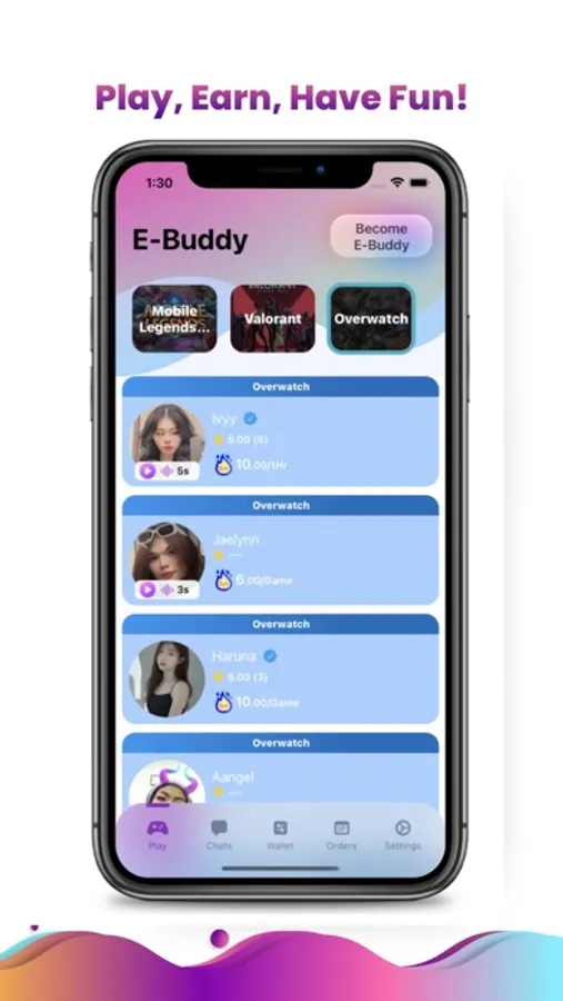 If you wish to provide gaming services and be listed on the app, you can sign up as an E-Buddy by submitting your application on the app. Your application will be reviewed by the platform.