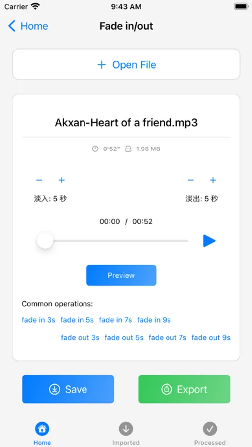 7. Volume Adjustment: adjust the volume of audio files.