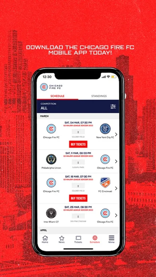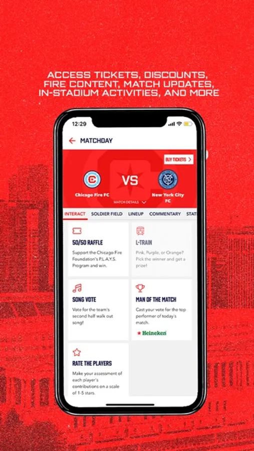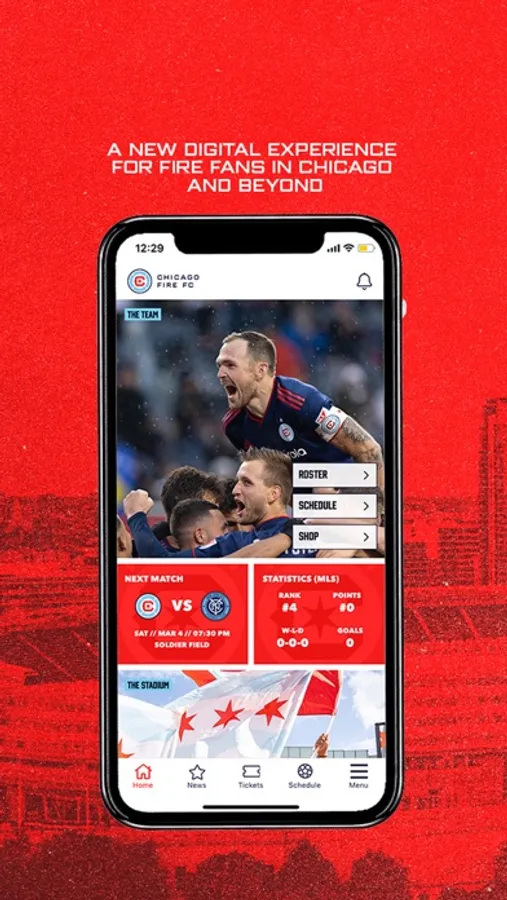 New for 2023! Download the all-new, revamped Chicago Fire Football Club official mobile app and keep the club at your fingertips all season long. Access and manage your tickets, take advantage of in-stadium discounts, keep up with the latest Fire content, follow live match updates in real time, and more! Maximize your matchdays at Soldier Field by downloading the new Chicago Fire FC mobile app today.