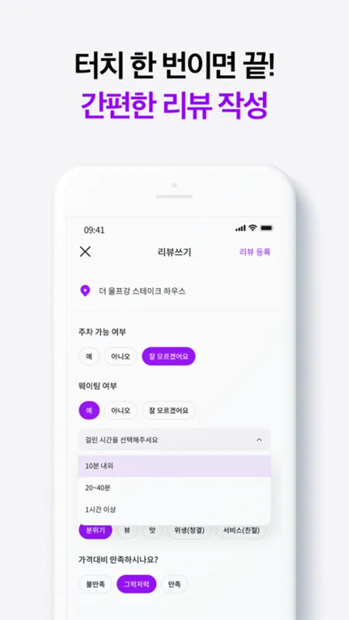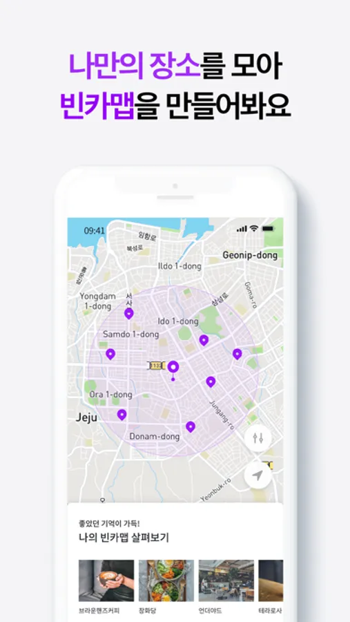 매 순간의 장소 경험을 터치 몇 번만으로! 간편하고 자세하게 기록하고, 다음에 잊지 않도록 간직해보세요.