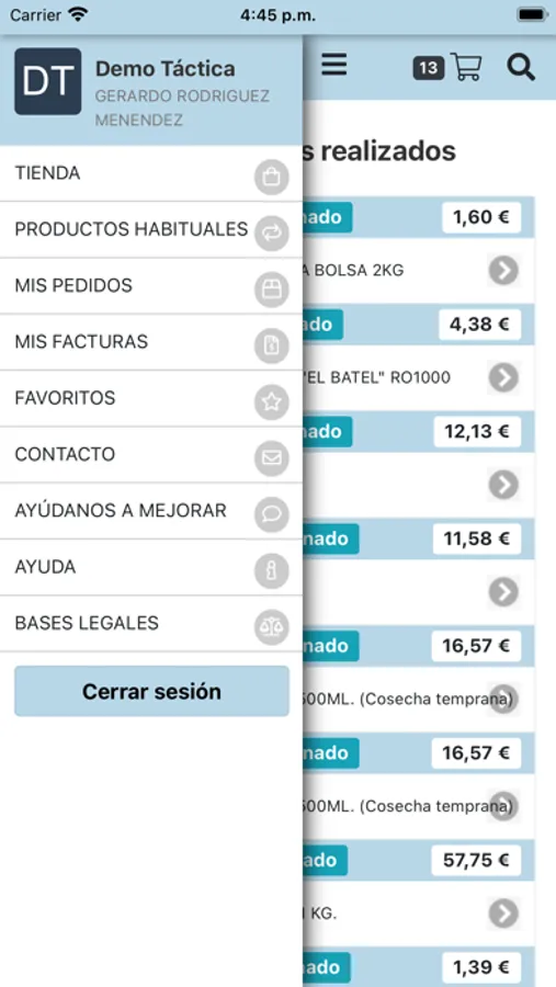 Codilex proporciona una aplicación a sus clientes para que estos puedan realizar y consultar sus pedidos.