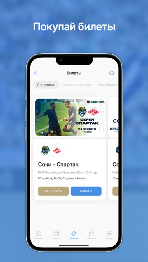 Здесь вы можете в удобном формате следить за игрой в подробном матч-центре, смотреть актуальный календарь основной команды, покупать билеты, а также изучать биографии и статистику игроков.