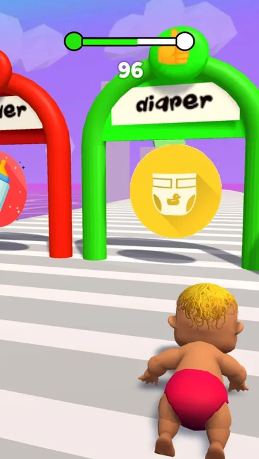 Its not a parent run game not a mother run game nor the man run game. its a baby run game.you need to choose the door with plus sign.this is the dirty diaper fun race game.Just as a real parent, it is your responsibility to decide, for your baby to remain clean and healthy.all is in your control.