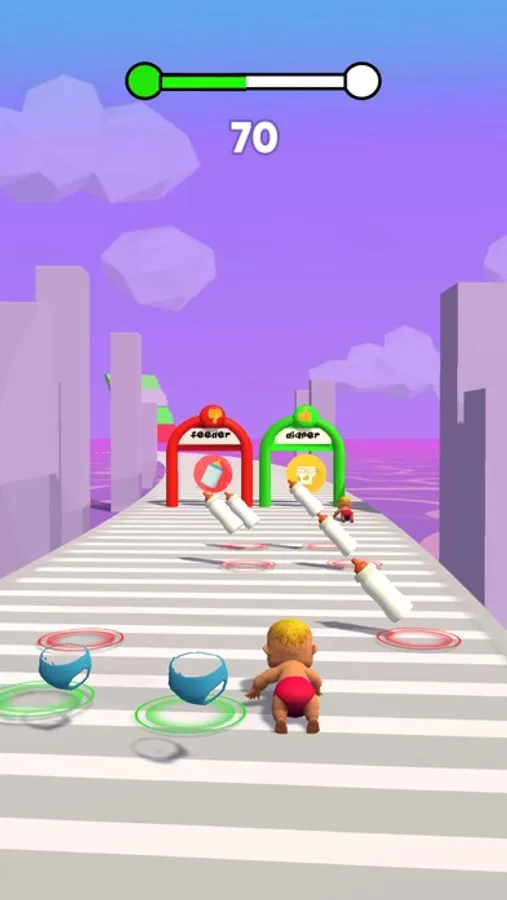In this game baby run with diaper if you choose to feed baby diaper will be dirty if you choose to clean diaper like tissue box and new diaper your baby diaper will be clean.