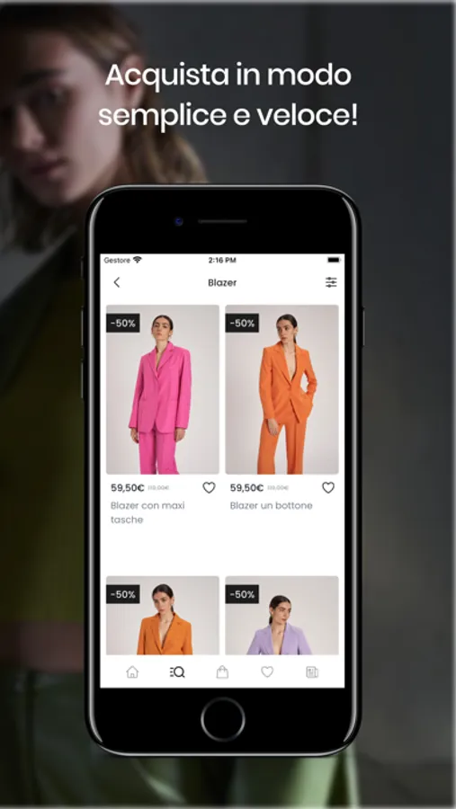 Ovunque tu sia, accedi rapidamente per non lasciarti sfuggire i tuoi preferiti. Naviga le varie collezioni che presentiamo e lasciati ispirare dai look proposti. Trova quello che stai cercando utilizzando la nostra barra di ricerca. I filtri ti aiuteranno a individuare quello che vuoi.