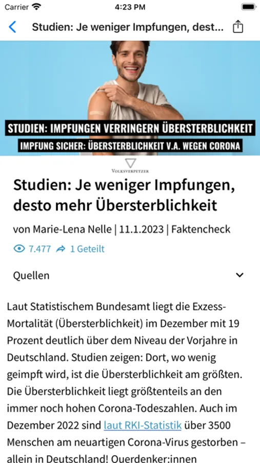 Wie schon erwähnt, ist die Volksverpetzer-App wie unser gesamter Content für alle komplett kostenlos. Die Fake News sind gratis, da darf die Aufklärung nicht hinter einer Paywall sein. Damit kannst du dich direkt im Kampf gegen Desinformation, Demokratiefeindlichkeit und Hass beteiligen - und kannst dich oder andere informieren - und auch einfach unterhalten, denn bei uns gibt es nicht nur trockene Analysen, sondern alles wie immer auch interessant gestaltet. Denn wenn Fake News eines sind, dann nicht langweilig. Die Faktenchecks dürfen da nicht hinterherhinken.
