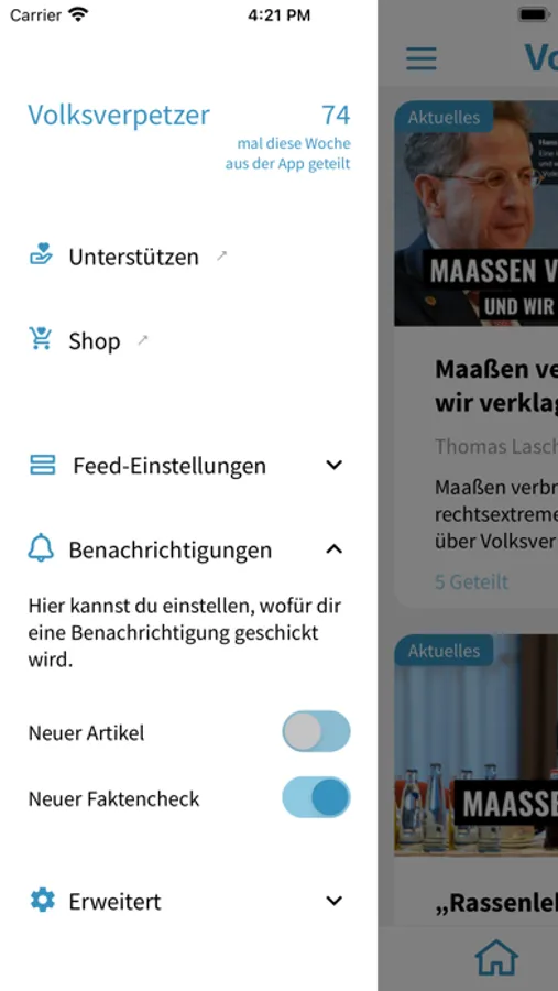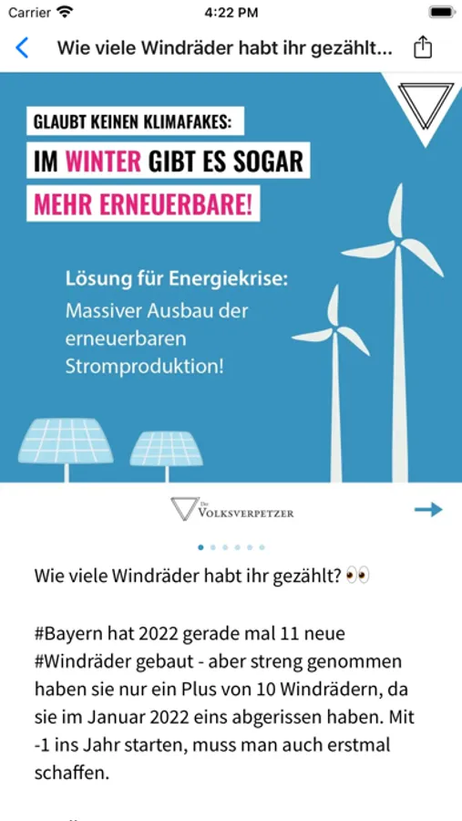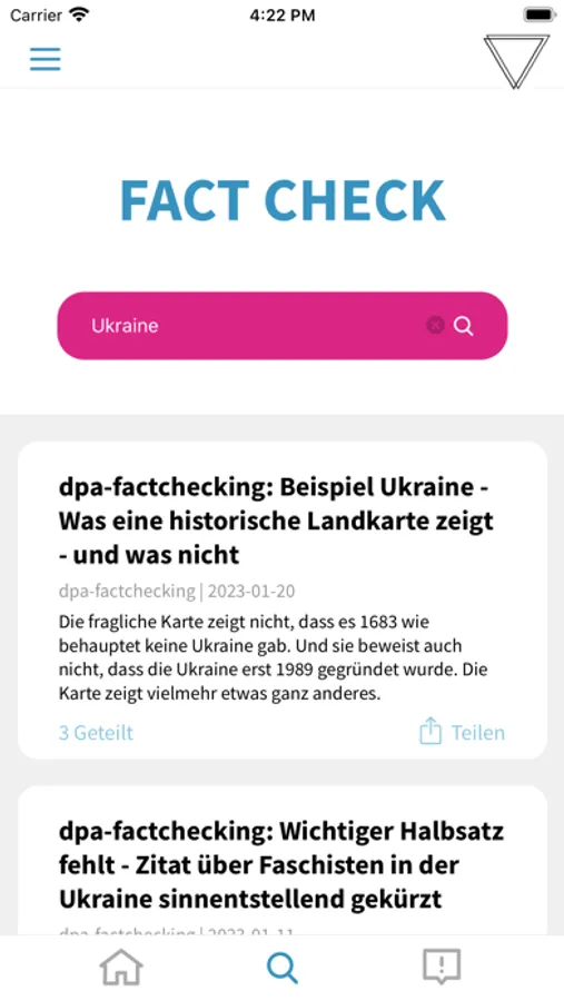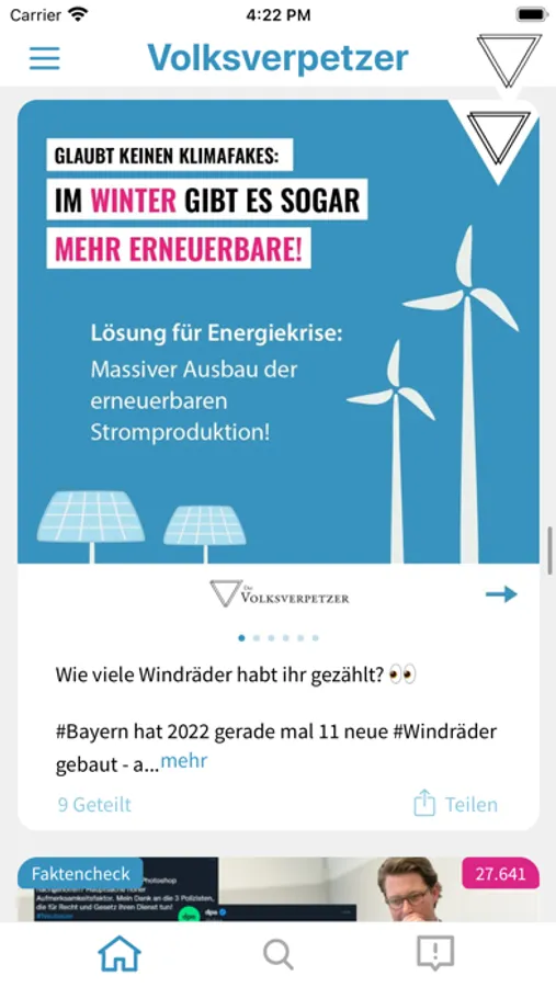 Damit kannst du ab jetzt Faktenchecks, Memes und Sharepics bequem aus der App teilen - damit wir den Algorithmen die Macht über unseren politischen Diskurs nehmen. Danke dir!