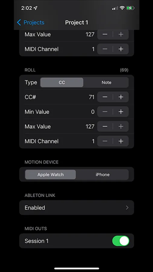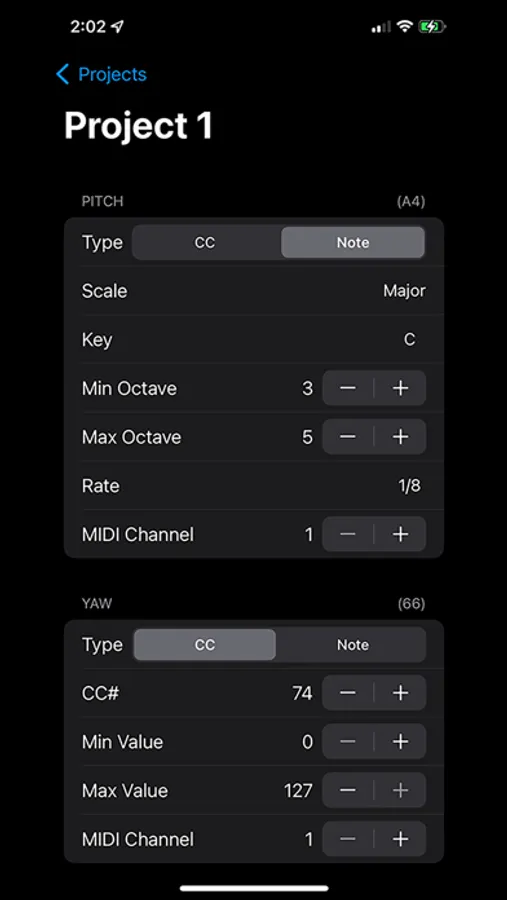 - You can control 3 synth parameters with the pitch, yaw and roll values of your motion data.