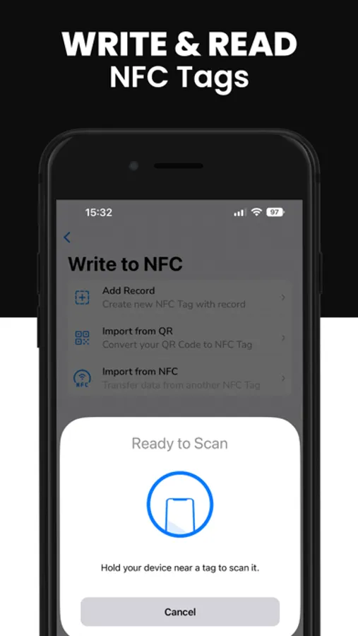 Air NFC Tag Tools, search devices nearby. Read and write to NFC tags, Scan and create QR codes from Photo or GIF