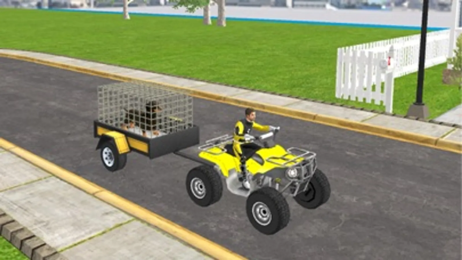 The little dog’s safety is in your hands so, make sure you get him home safely in your ATV Bike dog transporter driver or you will fail your dog transporting pet trolley driver mission. Make sure you drive your ATV Quad transporter bike safely as the safety of the little pet animal dog depends on you, driver. Hence drive carefully in your dog cargo trolley transport driver and drop the animal dog pet to his new pet home.