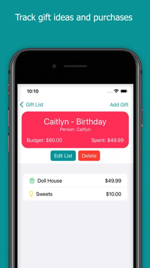 Download Gift List today and start organizing your gift-giving like a pro with the ability to track and budget your gift ideas and spending all in one app!