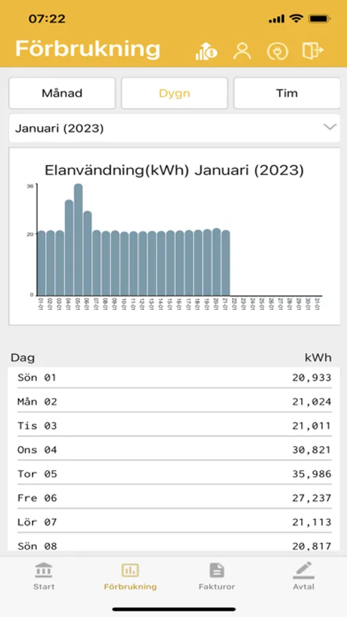 Oavsett om du är elkonsument eller elproducent så kan du se dina månads-,dygns- eller timvärden i vår app.