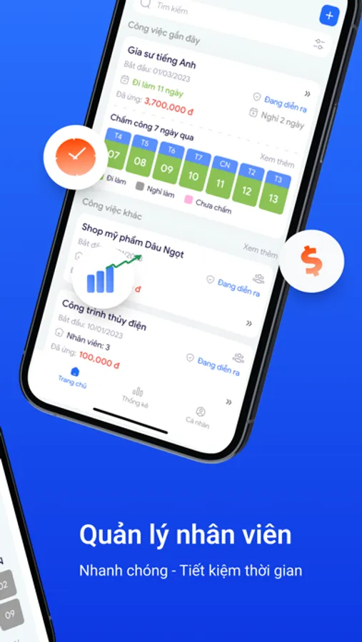 - Chấm công cho từng nhân viên