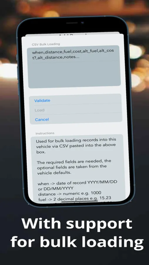 Bulk Loading is supported via CSV, so if you already track your fill ups, you can load them into Vehicle Logger and visualise all of your historical data immediately.