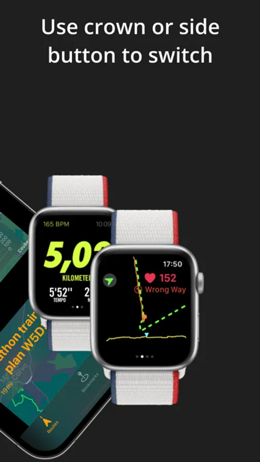 A quick glance at your watch display (even always on display) and you will know where you should be heading, whether you are running, hiking or cycling.