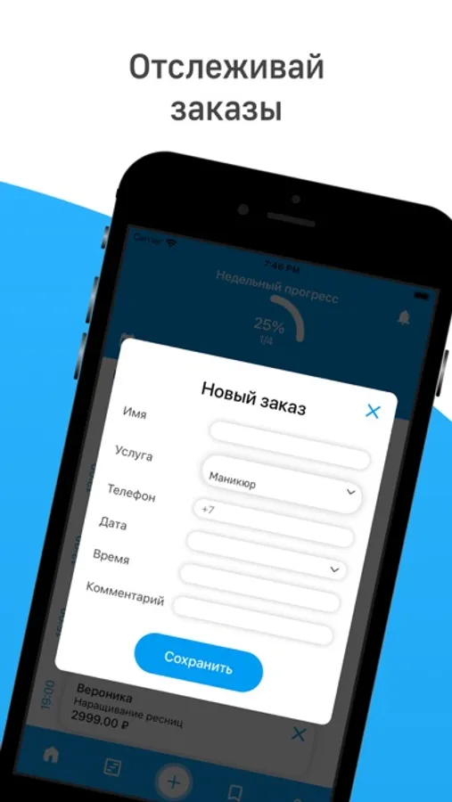 Клиент сам записывается на удобное для него время, не отвлекая мастера от работы.