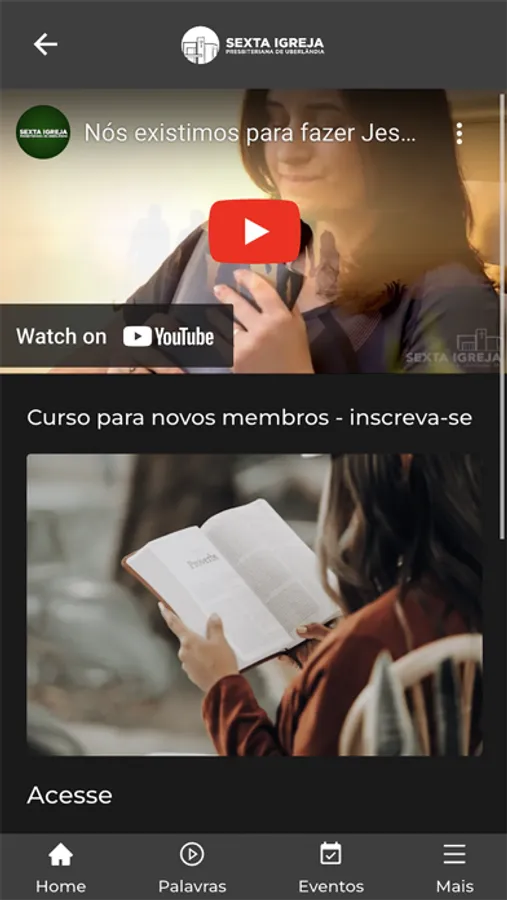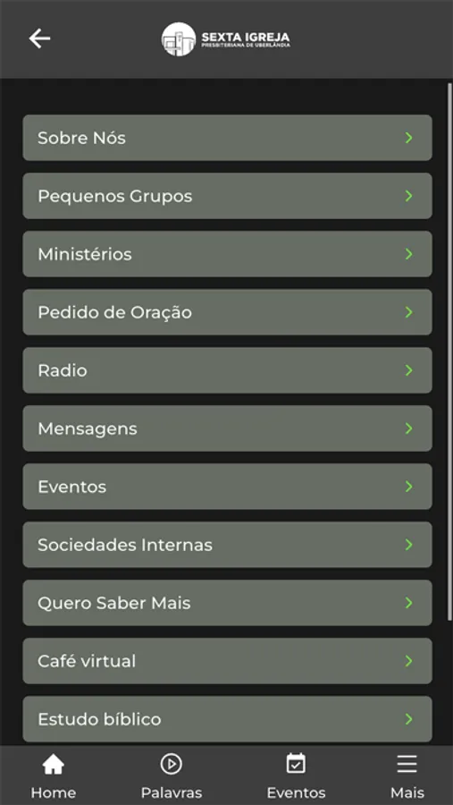 Aplicativo da SEXTA IGREJA PRESBITERIANA DE UBERLÂNDIA contendo as seguintes funcionalidades :