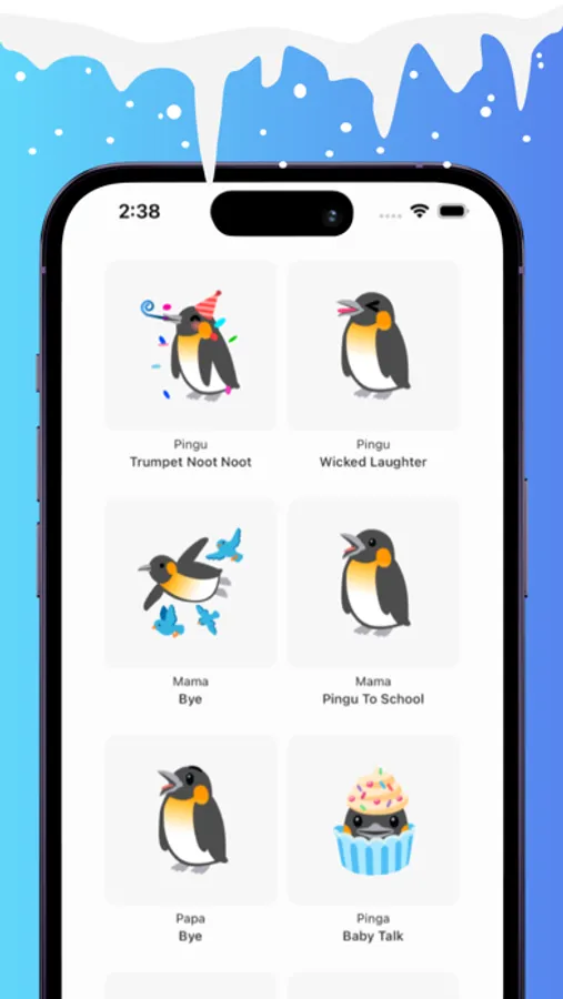 It has 40+ Pingu sound effects, including exclusive sound effects from Pingu, Pinga, Mama, Papa, Robby the seal, and others!