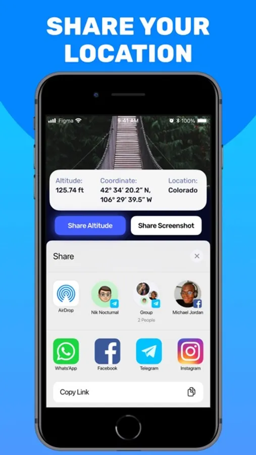 Share altitude and app screenshot