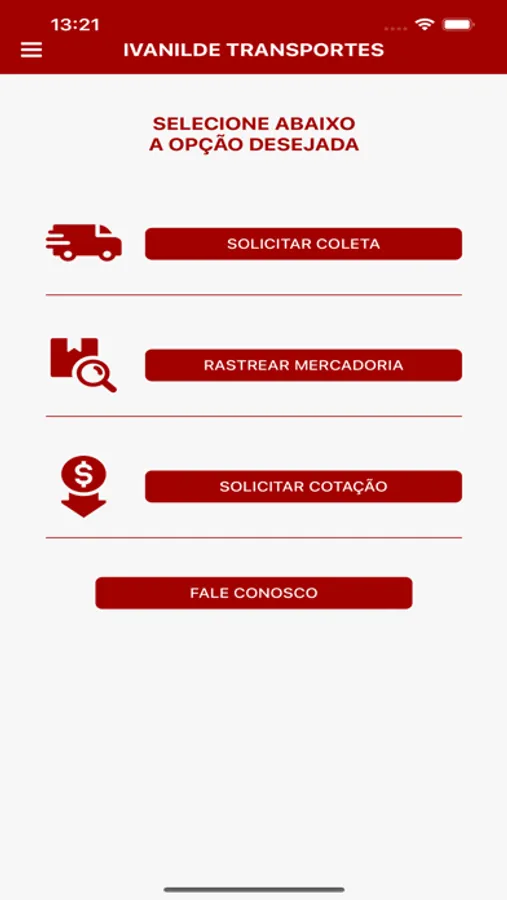 Ivanilde transportes, este app permite o rastreamento de mercadoria, solicitação de coleta, solicitar uma cotação, Fale conosco.